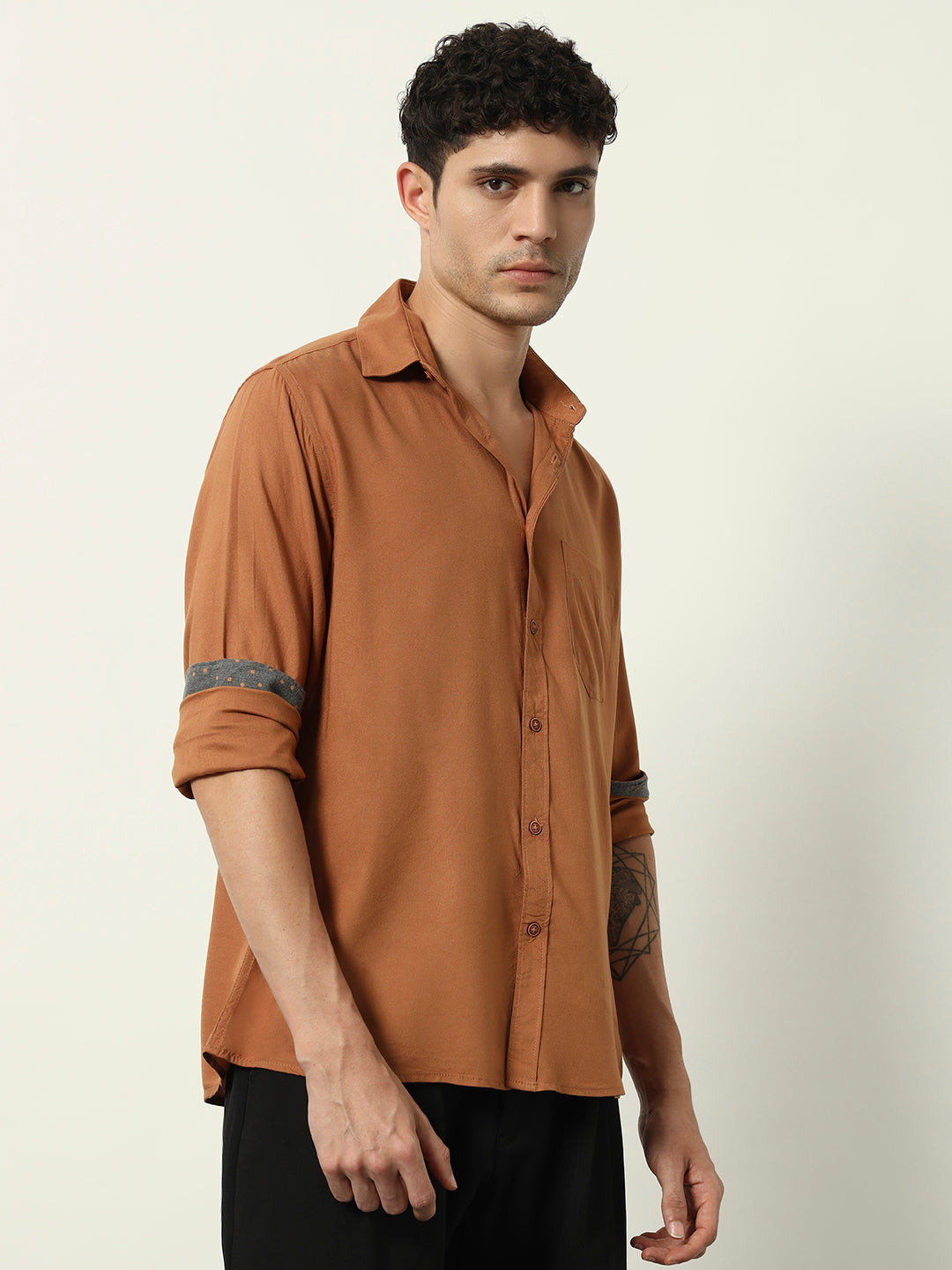 Add a warm, stylish touch to your wardrobe with this rust brown casual shirt. Crafted...