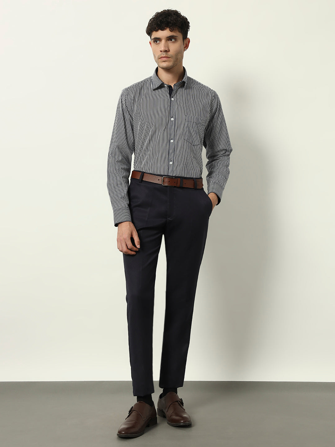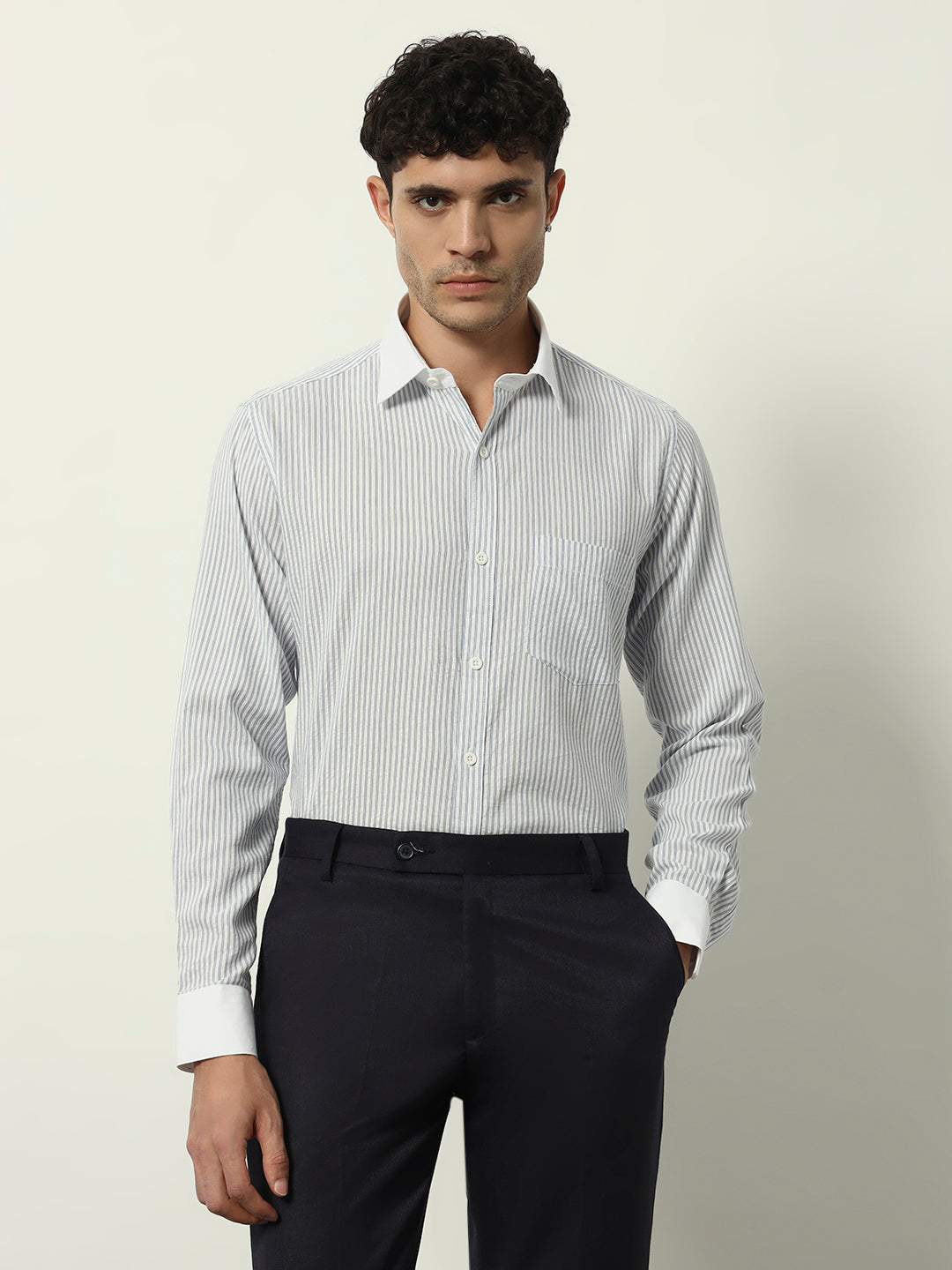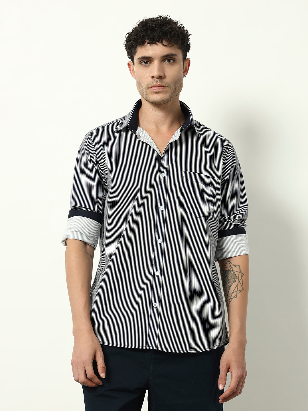 Dual Tone Detail: Classic Striped Shirt with Contrasting Finishes
