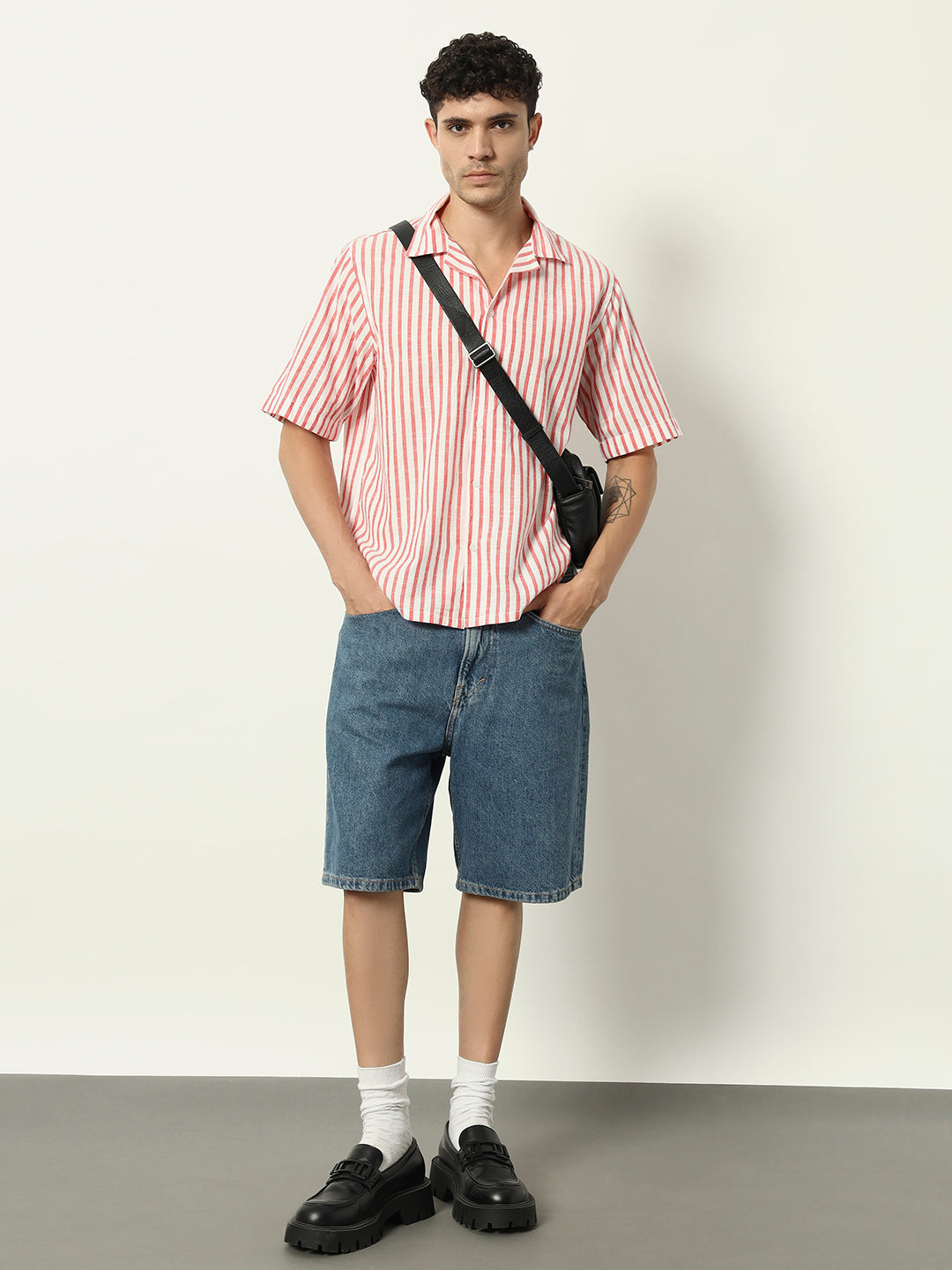 Coral Coast: Breezy Vertical Stripe Shirt in White & Redβ