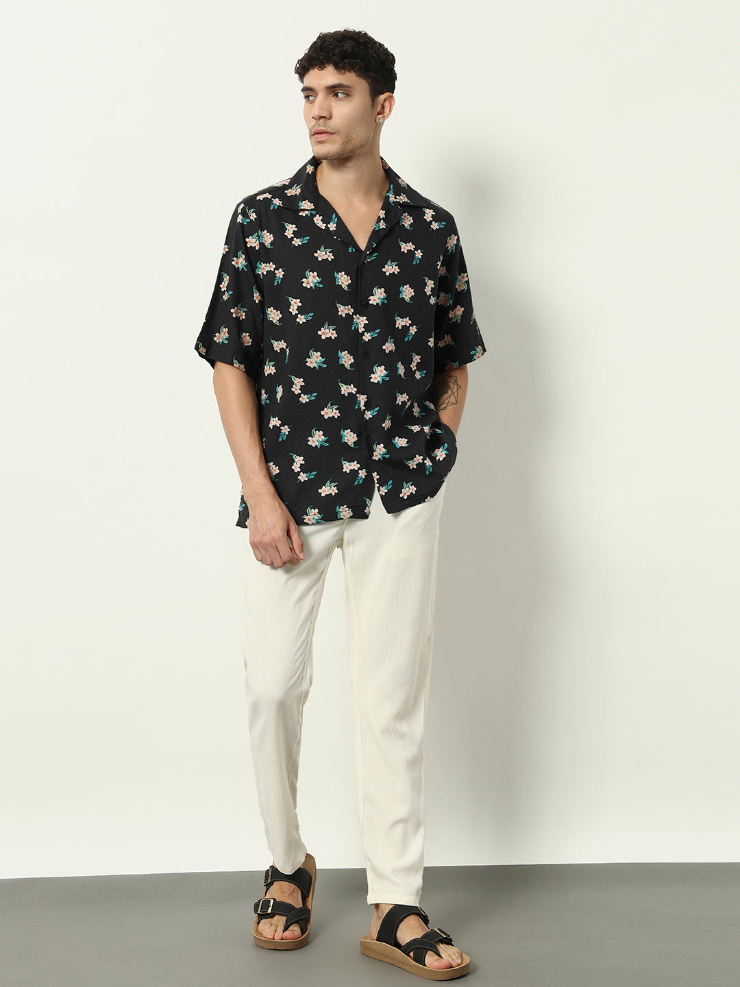 Step up your casual style with this black floral print shirt. Designed for relaxed, easy-going...