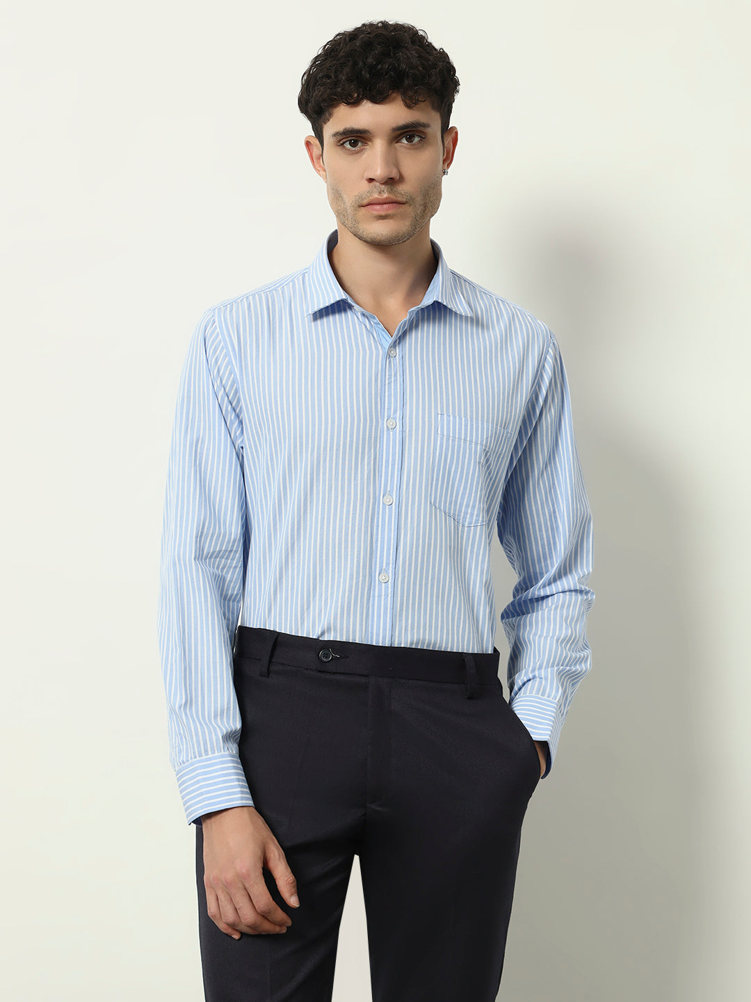 Stay sharp and stylish with this light blue striped shirt. Designed with a classic collar,...