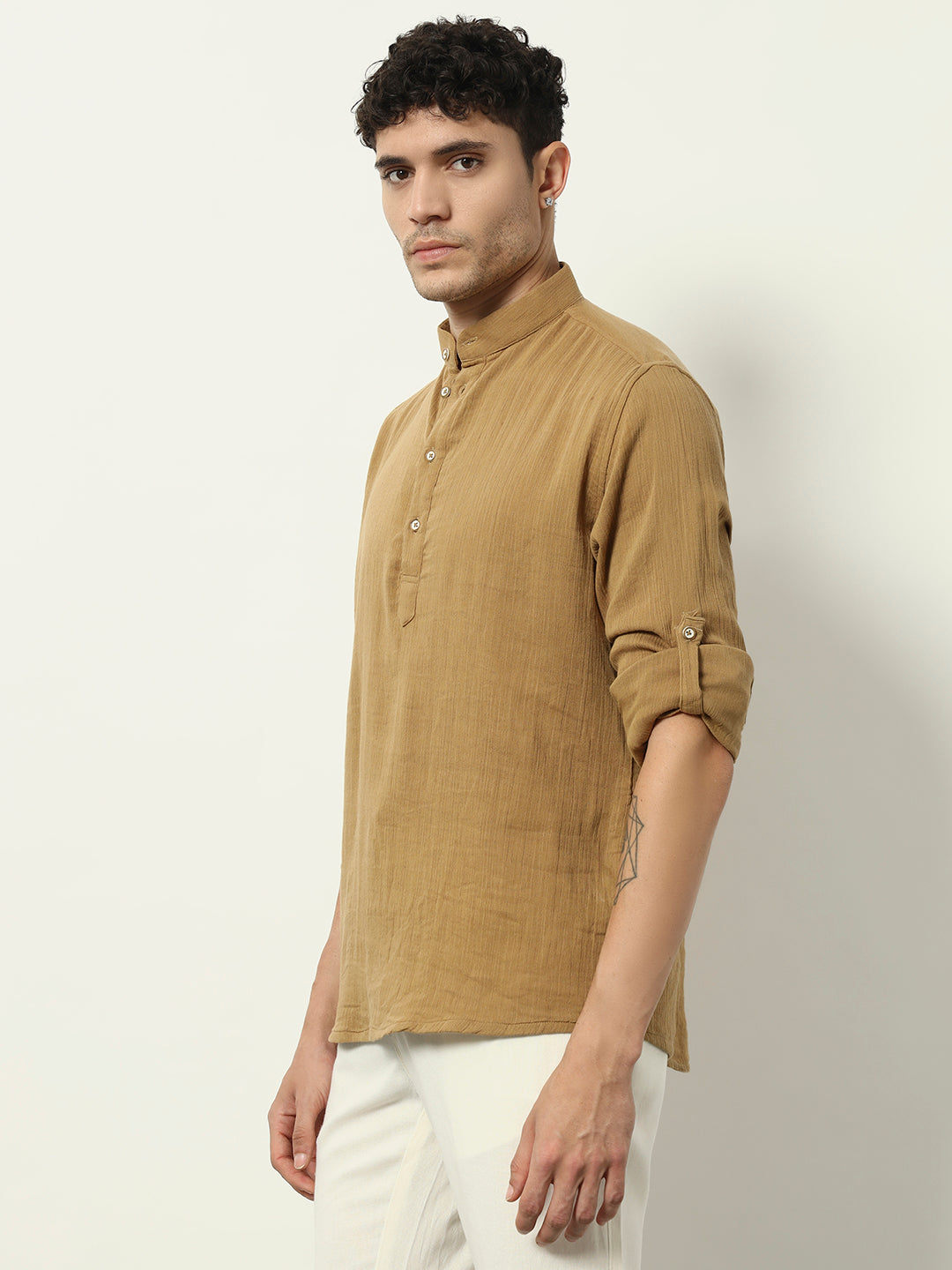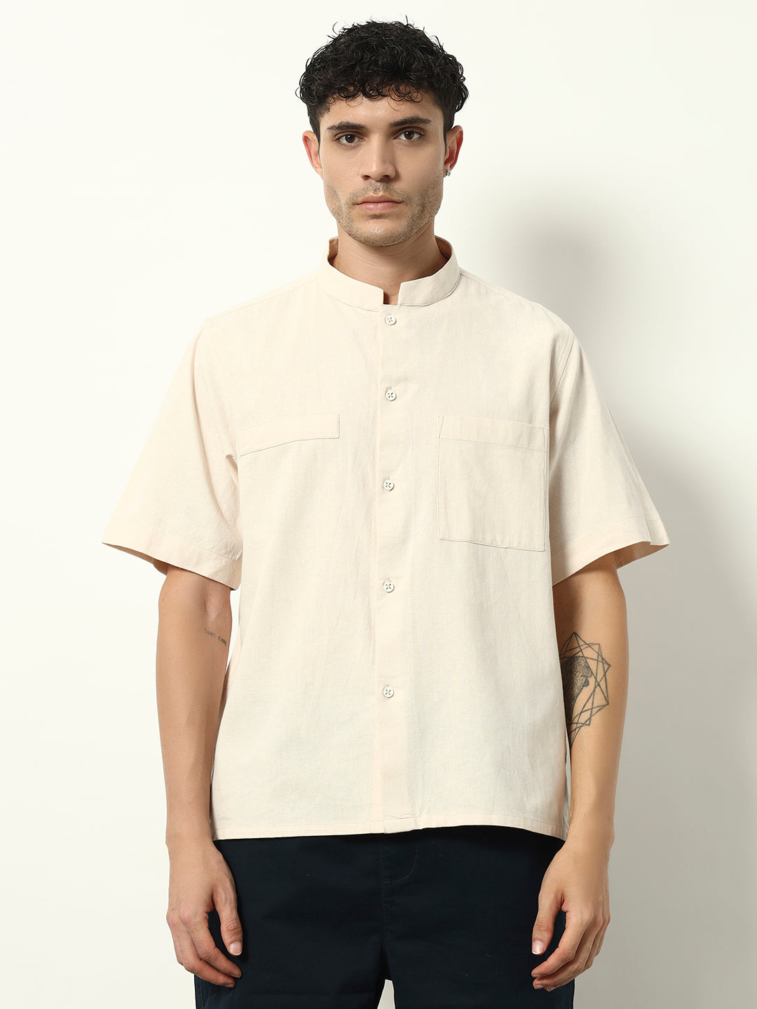 Sandshell Luxe: Elevated Mandarin Collar Shirt
