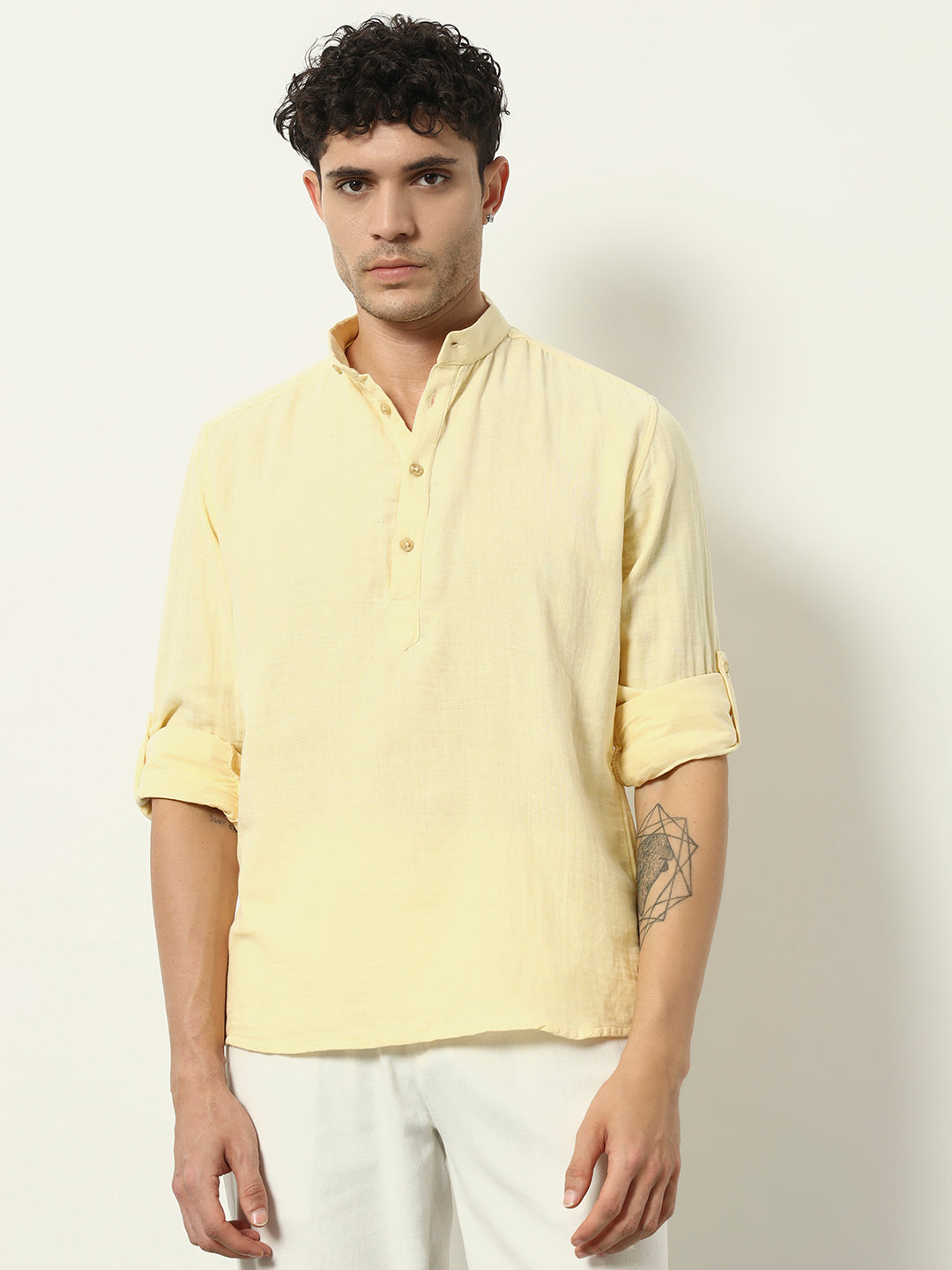 Golden Dusk: Contemporary Mandarin-Collar Shirt in Soft Yellow