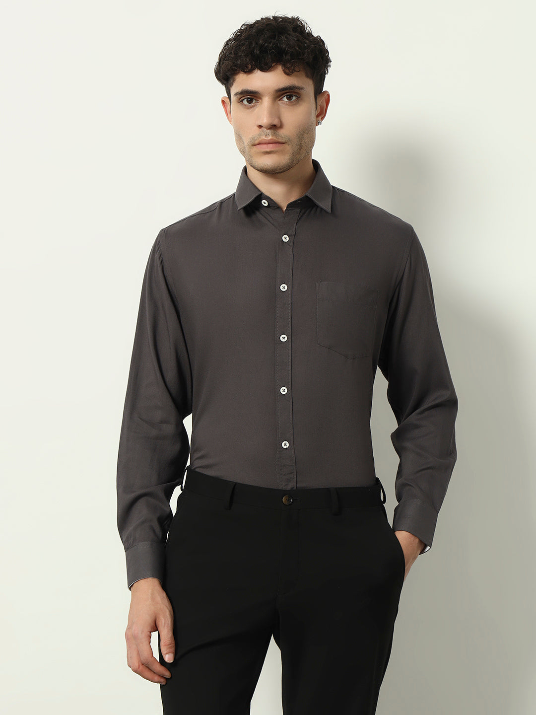 Command attention in understated style with The Obsidian Classic β Charcoal Elegance Shirt. Meticulously tailored...