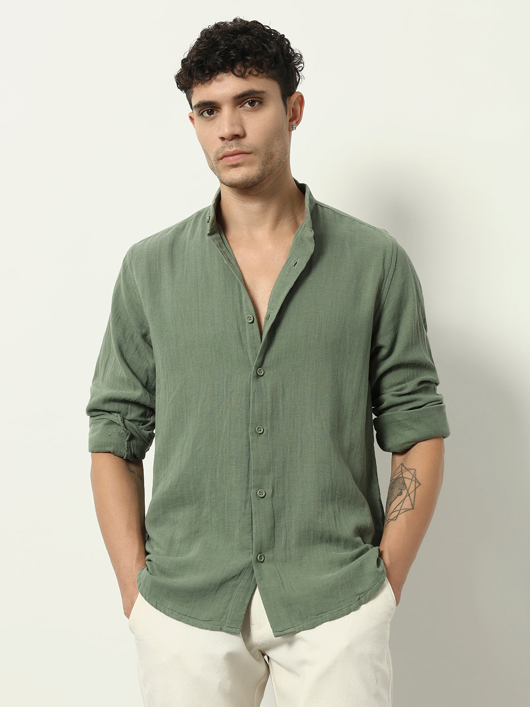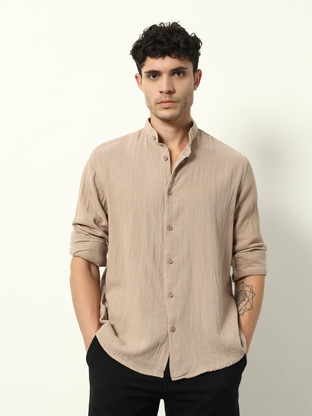Pure Form: Men's Mandarin Collar Casual Shirt