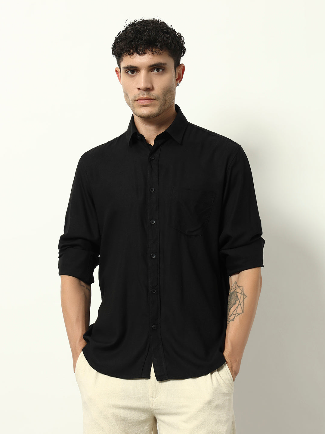 Step up your casual style with this black floral print shirt. Designed for relaxed, easy-going...