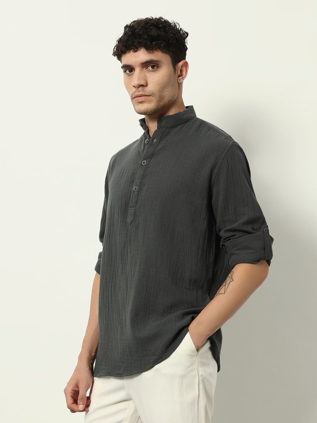 "Modern Heritage: Charcoal Kurta with a Contemporary Twist"