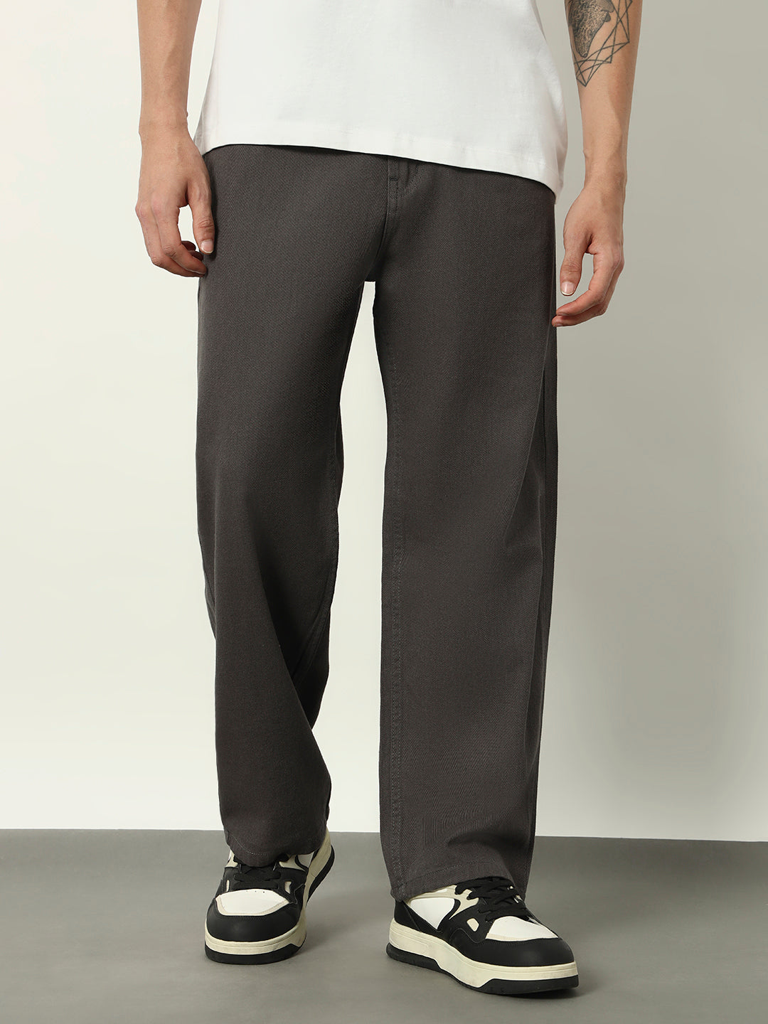 Effortlessly cool and versatile, these wide-leg baggy pants arrive in a deep charcoal grey that...