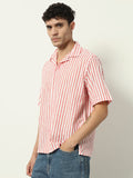 Coral Coast: Breezy Vertical Stripe Shirt in White & Red”