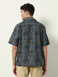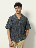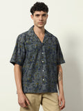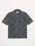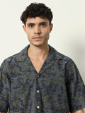 Indigo Bloom: Modern Floral Cuban-Collar Shirt