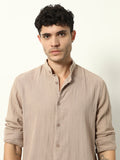 Effortlessly elegant and endlessly versatile, the Mocha Muse shirt is crafted for the modern minimalist. Tailored in a soft, breathable fabric with a subtle texture, it features a refined mandarin collar and a relaxed silhouette that elevates everyday dressing. Its muted mocha hue makes it the perfect neutral base for both casual and semi-formal looks. Roll up the sleeves for laid-back charm or wear it buttoned for understated sophisticationβthis shirt is your go-to for timeless style with contemporary ease