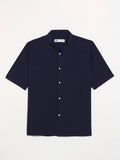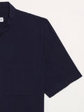 Immerse yourself in quiet sophistication with this short-sleeve shirt in Nocturne Navy, crafted from a finely textured cotton that speaks to tactile refinement. The architectural mandarin collar and clean, minimalist lines are balanced by functional front pockets, offering a nod to utilitarian elegance. Finished with contrast mother-of-pearl buttons, each detail is thoughtfully considered—tailored not just to fit, but to express. Designed for effortless transition from daytime ease to evening allure, this piece is a modern essential in the language of luxury.