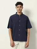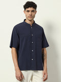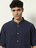 Modern Minimal: Structured Navy Shirt with Statement Simplicity"