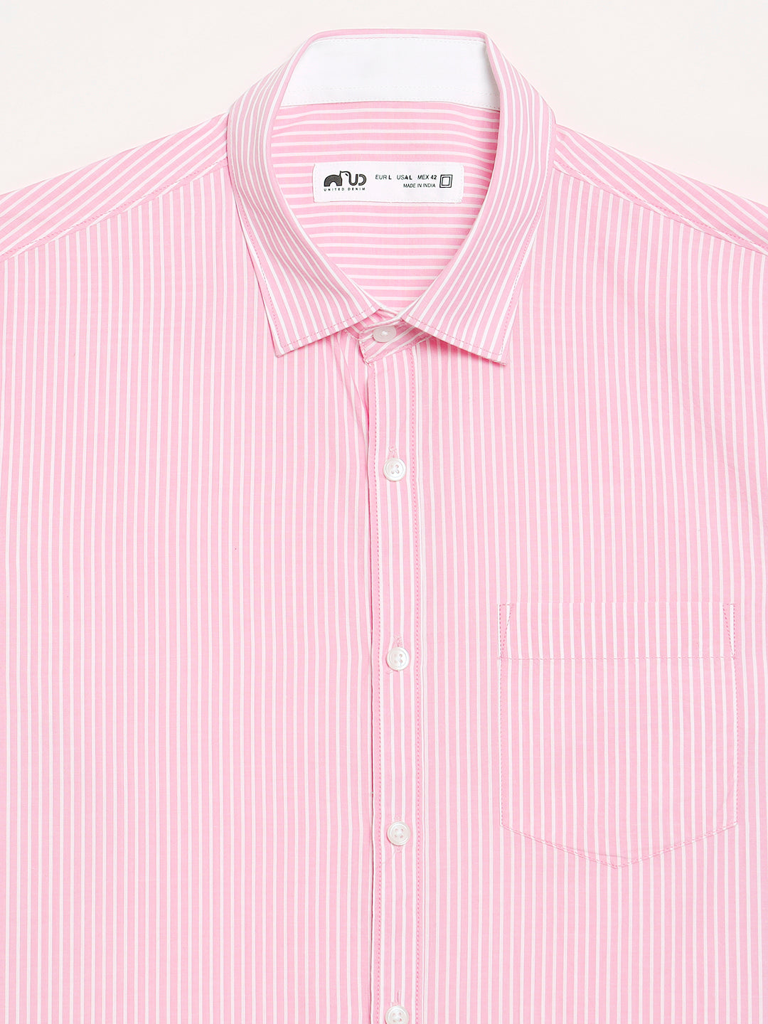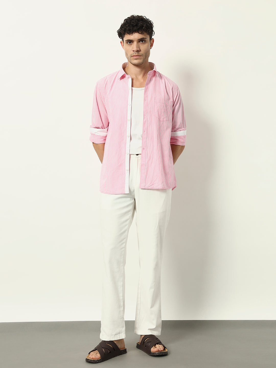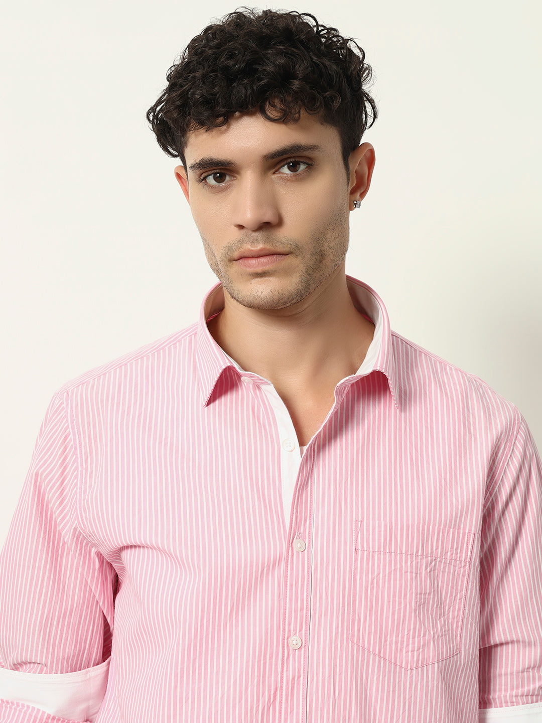 Ignite your everyday style with the Pink Ember shirt — a modern twist on the timeless striped classic. Featuring soft pink and white pinstripes, this shirt blends subtle charm with confident elegance. Crafted from breathable cotton for all-day comfort, its sharp collar, full sleeves with contrast cuffs, and tailored silhouette make it perfect for both office finesse and off-duty flair.