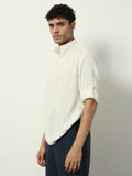 Discover elevated simplicity with the Pure Form Mandarin Collar Shirt – a contemporary take on classic minimalism. Tailored in a lightweight, breathable fabric, this shirt features a crisp off-white tone and a clean mandarin collar that lends a refined yet relaxed feel. The half-button placket and effortless silhouette make it a go-to piece for both casual and smart-casual occasions.