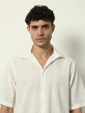 Elevate your summer wardrobe with the Seersucker Solstice, a timeless Cuban-collar shirt crafted for understated sophistication. Made from breathable cotton seersucker fabric, this shirt features a subtle vertical texture that enhances both comfort and visual interest. The relaxed silhouette, combined with a crisp button-down front and short sleeves, makes it a versatile choice for resort settings, city strolls, or weekend brunches. Its classic ivory hue pairs effortlessly with both neutral and bold tones, ensuring year-round appeal.